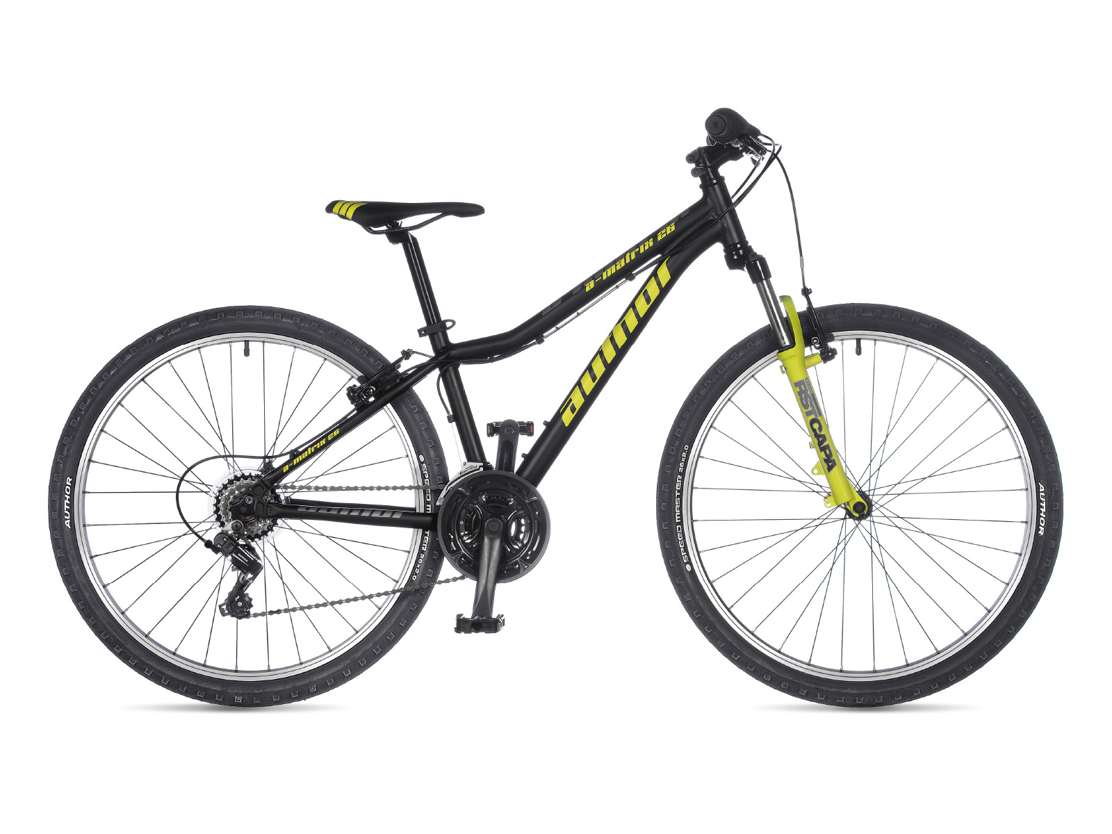 Бренд AUTHOR Модель A-MATRIX 26 Год 2021 Материал рамы Алюминий (Alloy) Рама/описание alloy 6061 26" Тип вилки Амортизационная (пружина) Вилка/регулировки RST Capa T 26 (80 mm) Диаметр колес 26" Спицы black steel Обода alloy 32 holes Резина AUTHOR Speed Master 26" × 2.00" Тормоза Ободные (V-brake) Грипсы AUTHOR kratton rubber Тормоз TEKTRO V Тормозные ручки TEKTRO plastic / alloy Уровень оборудования Любительский Шифтеры SHIMANO Revoshift (18) Переключатель передний SHIMANO TY500 (31.8) Переключатель задний SHIMANO TY200 Цепь KMC Z6 Каретка VP COMP cartridge Шатуны PROWHEEL 42-34-24 teeth 152 mm cranks Количество скоростей 18 Руль steel 20 mm 620 mm Рулевая колонка PRESTINE 1-1/8" Вынос alloy Седло AUTHOR Подседельный штырь alloy (27.2) Педали resin Втулка передняя QUANDO 32 holes Вес 12,9 kg / 13,5" Втулка задняя QUANDO 32 holes -
