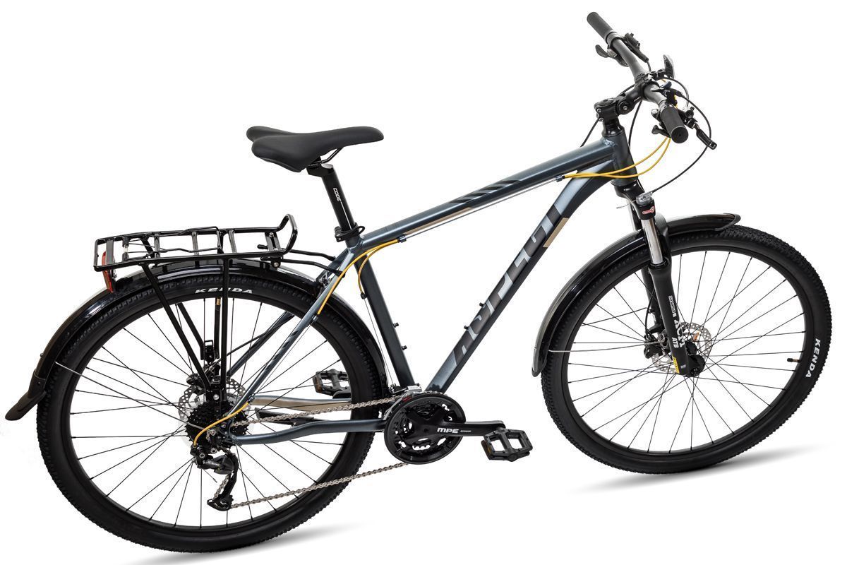Бренд ASPECT Модель 29 AIR GRAND TOUR Год 2022 Серия AIR Материал рамы Алюминий (Alloy) Рама/описание ALU 6061 Hydroformed DoubleButted InternalCables Тип вилки Амортизационная (масло) Вилка/регулировки Suntour XCM RL 100mm Диаметр колес 29" Резина Kenda K1153 29x2.1 Тормоза Дисковые гидравлические Тормоз Tektro HD-M275 Hydraulic disc 160/160 Уровень оборудования Любительский Шифтеры Shimano Altus SL-M2010 Переключатель передний Shimano Altus FD-M370 Переключатель задний Shimano Alivio RD-M3100 Кассета Shimano HG200-9 11-34T Шатуны PROWHEEL Alloy MPE 22/32/44T*170mm Количество скоростей 27 Пол/возраст Мужской -
